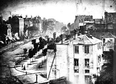 Im Zug von Konstanz nach Berlin am Dienstag. Ich lese in Agambens "Profanierungen", unter anderem diese schöne Passage auf Seite 18f.: Sie kennen sicherlich die berühmte Daguerrotypie vom Boulevard du Temple, die als die erste Fotografie betrachtet wird, auf der eine menschliche Gestalt zu sehen ist. Die Silberplatte stellt den Boulevard du Temple dar, so wie ihn Daguerre vom Fenster seines Arbeitszimmers aus zur Stoßzeit fotografiert hat. Der Boulevard muß voller Menschen und Kutschen gewesen sein, und trotzdem sieht man, da die damaligen Apparaturen eine extrem lange Belichtungszeit erforderten, von dieser ganzen Masse in Bewegung absolut nichts. Nichts - außer einer kleinen Gestalt auf dem Trottoir linksunten auf dem Foto. Es handelt sich um einen Mann, der sich die Stiefel putzen ließ und deshalb ziemlich lange unbewegt blieb, das Bein leicht gehoben, um den Fuß auf das Bänkchen des Schuhputzers zu stellen. Das geht noch ein bisschen, philosophischer, weiter, zum Zusammenhang von Jüngstem Gericht, Fotografie und Gebärde. Ich habe dann, nur ein paar Minuten später, aufgehört mit Agamben-Lesen (zwiespältig, sehr zwiespältig, wie immer) und weitergelesen in Jeffrey Eugenides' "Middlesex" (dazu ein andermal dann mehr), wo ich auf jene schöne Passage auf S. 179f. gestoßen bin: As they head toward Belle Isle he delivers a disquisition on the history of photography, how Nicéphore Niepce invented it, and how Daguerre got all the credit. He describes the first photograph ever taken of a human being, a Paris street scene done with an exposure so long that none of the fast-moving pedestrians showed up except for a lone figure who had stopped to get his shoes shined. Das geht noch ein bisschen, pornografischer, weiter, mit Bildern von jungen Frauen und Autos und einem fiktiven Fotografen namens Plantagenet. (Plantagenet ist übrigens auch der Name einer Firma, die historisch akkurate Schuhe herstellt. Vermutlich wäre es ein Leichtes, sie um das Replikat eines Schuhs aus dem Jahr 1838 zu bitten, den einer, der ihn sich auf dem Boulevard du Temple putzen lassen würde, vielleicht getragen hätte.) Hier ist das Foto, das ich übrigens noch nicht kannte: